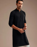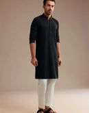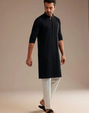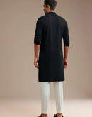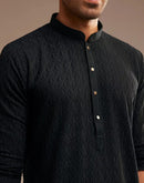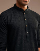 Black Rayon Kurta Set With Self Work Embroidery Elegant Designer Kurta Sets