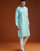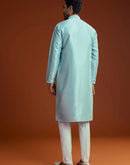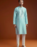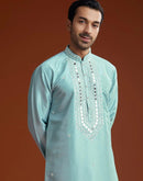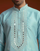 Blue Mirror Embellished Kurta Pant Set In Silk Elegant Designer Kurta Sets
