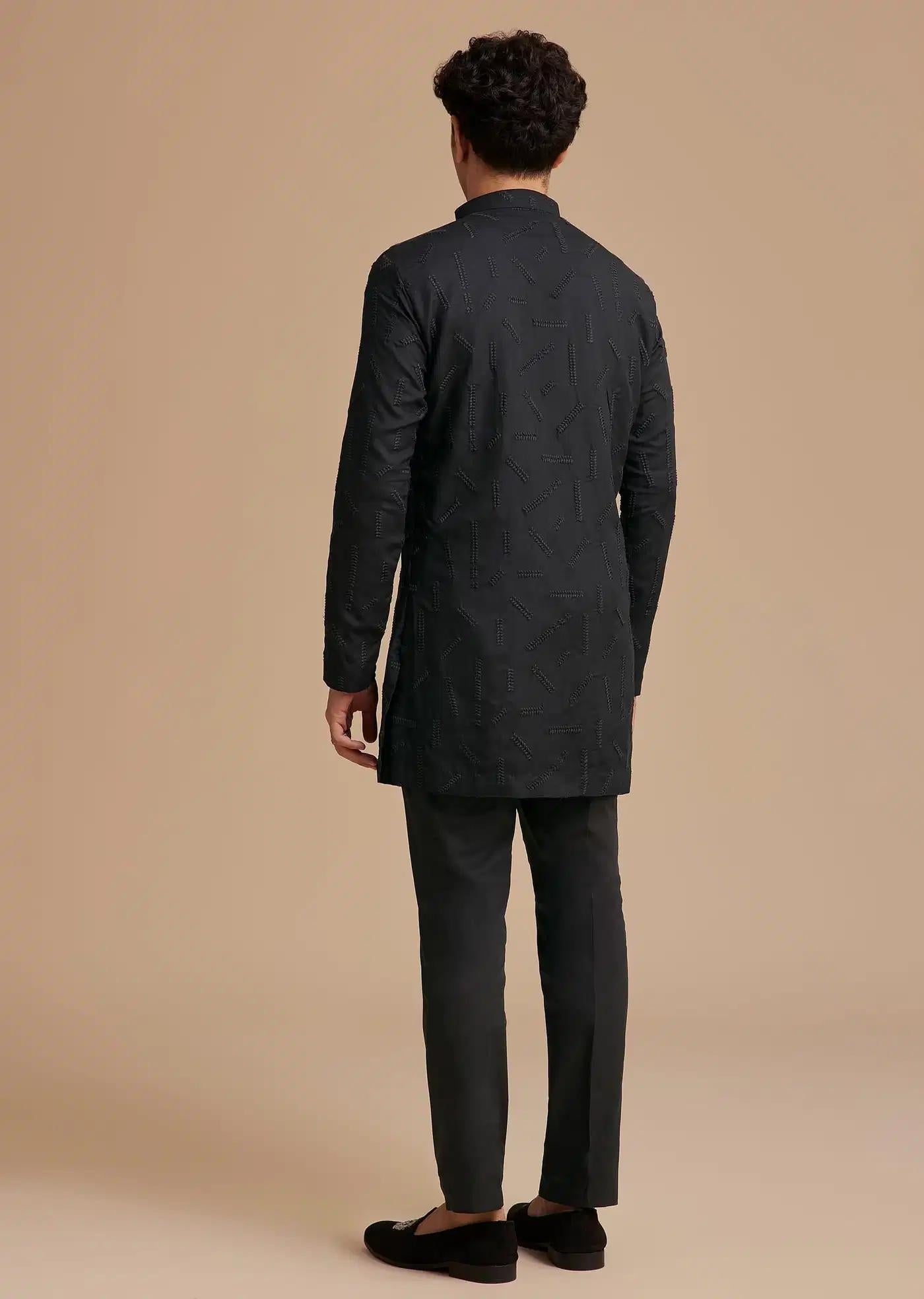 Product Speciality: The Black Cotton Textured Kurta Set Elegant Designer Kurta Sets is a versatile piece of traditional attire. Crafted for the stylish modern man, it is perfect for festive occasions, weddings, as well as casual events. The kurta ensemble, a timeless black, is detailed with intricate embroidery and refined design elements which only add to its appeal. The fabric is comfortable and offers ease of movement. This Kurta is a must-have in every man's wardrobe. Awarded as the Most Trusted Brand, we deliver styles as promised.