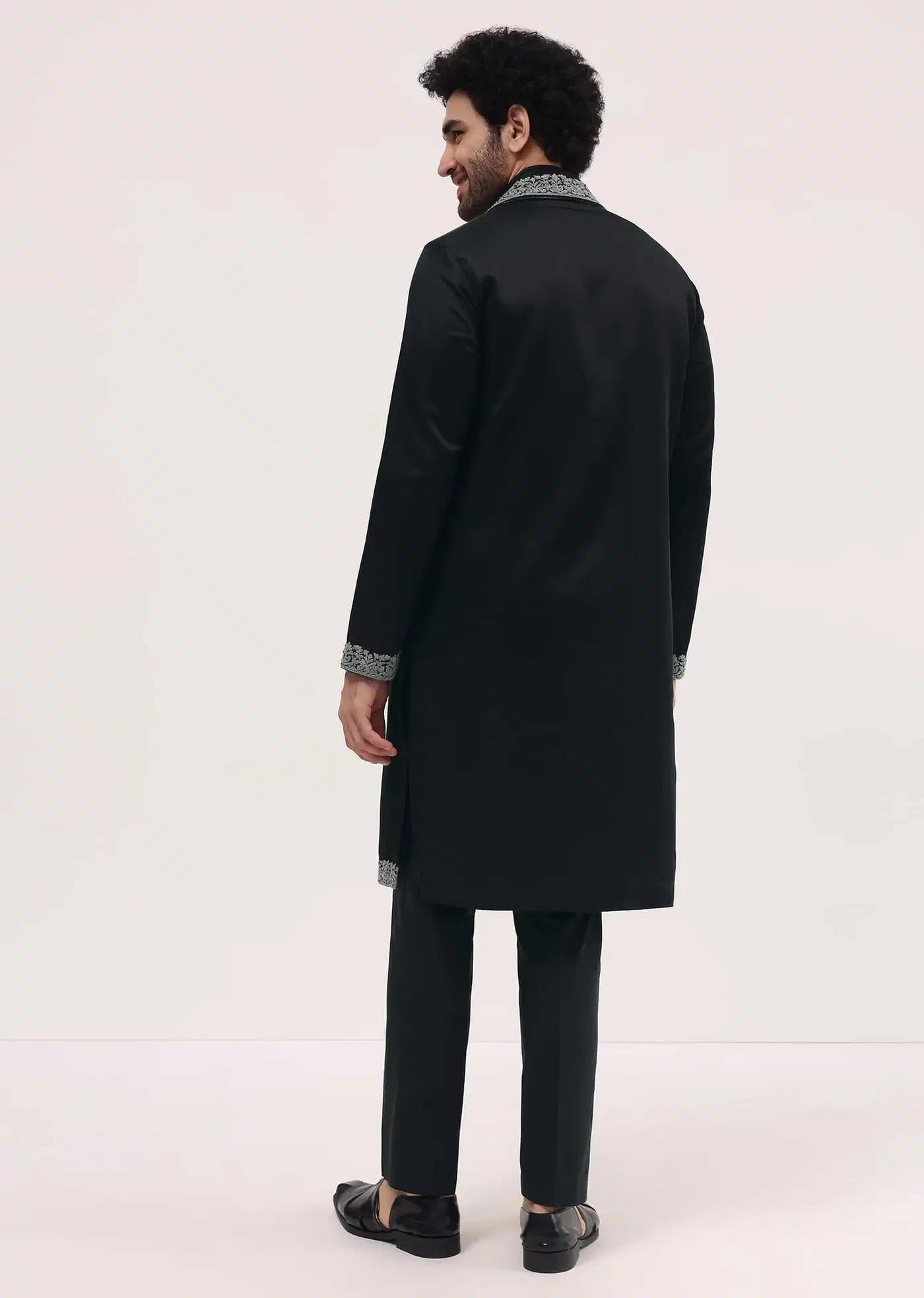 Product Speciality: This elegant designer Black Kurta Set In Resham Work With Dupatta For Men is a unique addition to our Traditional & Ceremonial Clothing category. Perfect for festive occasions, weddings, or casual wear, this black kurta set is tailored to the contemporary, style-conscious male. Though the fabric is unstated, the kurta set stands out for its exquisite Resham embroidery and thoughtful design elements. Awarded as the Most Trusted Brand, we deliver styles as promised.