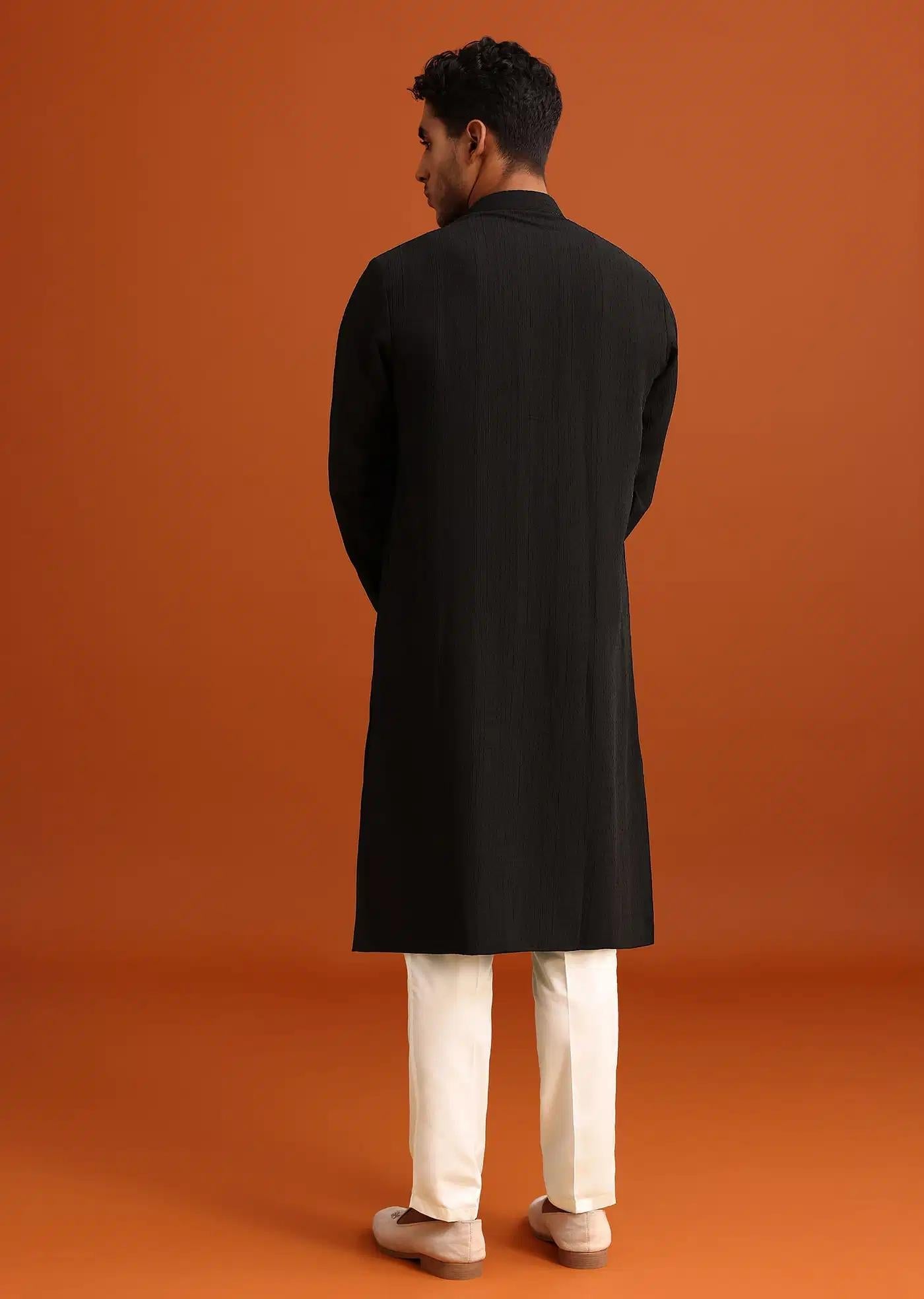 Product Speciality: This Black Kurta Set With Zipper Closure Elegant Designer Kurta Sets is a classic addition to your wardrobe. Perfect for festive events, weddings, or casual occasions, this traditional wear fits any setting. The kurta set is in a rich, deep black - a colour that never goes out of style. The unique zipper closure adds a modern touch to the timeless Kurta design. While the fabric is not specified, the quality is guaranteed. The elegant designer kurta set is a must-have for any fashion-conscious male. Embroidery and design elements enhance the look, making it a standout piece. Awarded as the Most Trusted Brand, we deliver styles as promised.