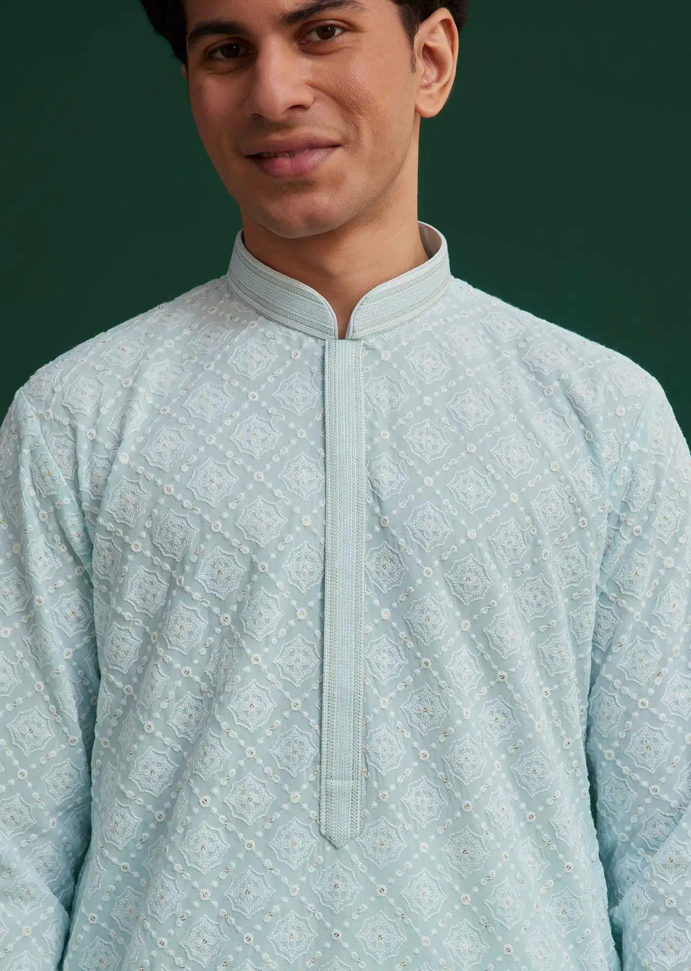 Product Speciality: Dive into the richness of tradition with our Blue Georgette Embroidered Kurta Set. Part of our premium Elegant Designer Kurta Sets collection, this beautiful piece caters to the fashion needs of any modern man. An ideal choice for festive occasions, weddings, or even casual events. The exquisite embroidery and unique design elements add a touch of elegance to the ensemble. The kurta, although unspecified in fabric, assures comfort and style. Tailored to perfection for the male silhouette, this blue kurta set is a must-have in your wardrobe. Awarded as the Most Trusted Brand, we deliver styles as promised.