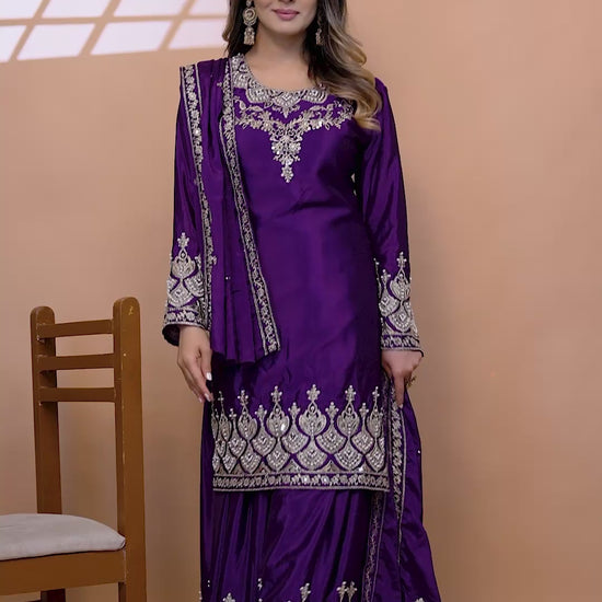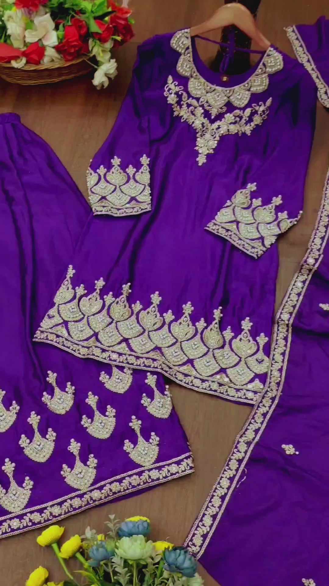 Fabric: Chinon With Coding Sequence Embroidery Work And Rivet Moti Work