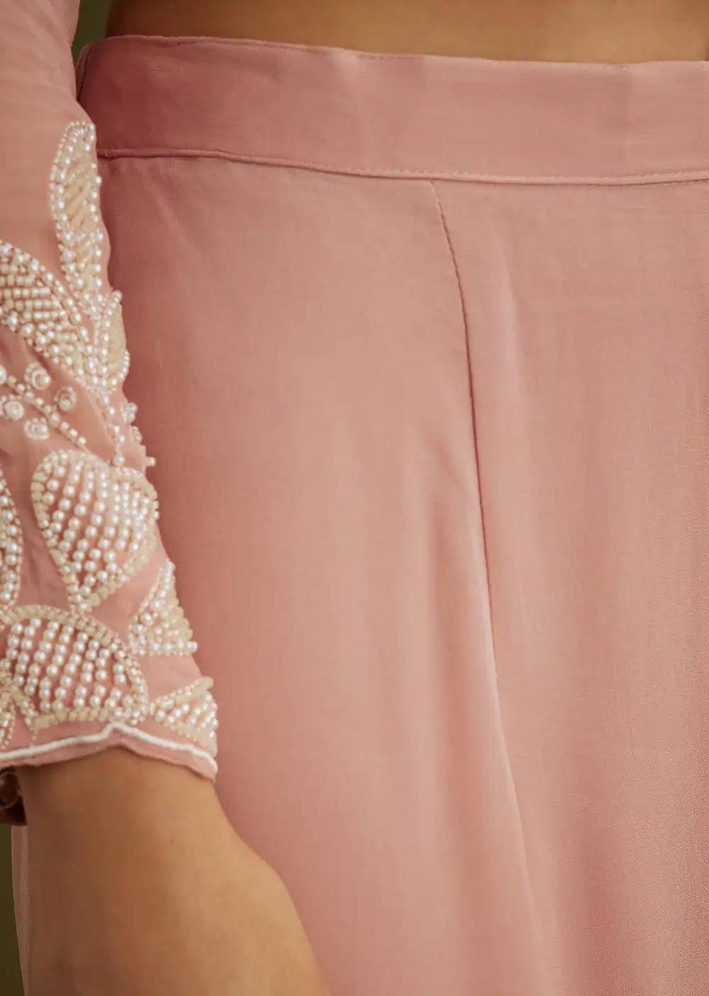 Product Speciality: Presenting the Pink Georgette Moti Work Asymmetrical Kurta Ensemble with Tassels Bordered Dupatta Outfit. This is a unique piece from our Traditional & Ceremonial Clothing category, specially designed for males. The radiant pink color of this Kurti, made from fine georgette fabric, gives a festive and regal touch to your attire. The exquisite moti work and asymmetrical design speak volumes about your style on any occasion, be it a wedding or a casual gathering. The outfit is further enhanced with a tassel bordered dupatta. Awarded as the Most Trusted Brand, we deliver styles as promised.